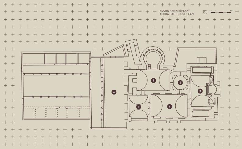 Müzenin kapalı sergi alanları, antik hamamın orijinal bölümleri olan laconicum/sudatorium (terleme odası), caldarium (sıcaklık) ve tepidarium (ılıklık) bölümlerine yayılıyor.