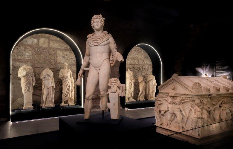 Side Müze Müdürlüğünün sorumluluğunda bulunan önemli antik yerleşimlerden Lyrbe’ye ait bazı buluntular da Antalya Müzesi’nden devralınarak koleksiyona kazandırıldı. Bu eserler arasında yer alan Apollon heykeli, müzenin yeni vitrin düzenlemeleri kapsamında etkileyici bir sunumla ziyaretçilerin beğenisine sunuluyor.
